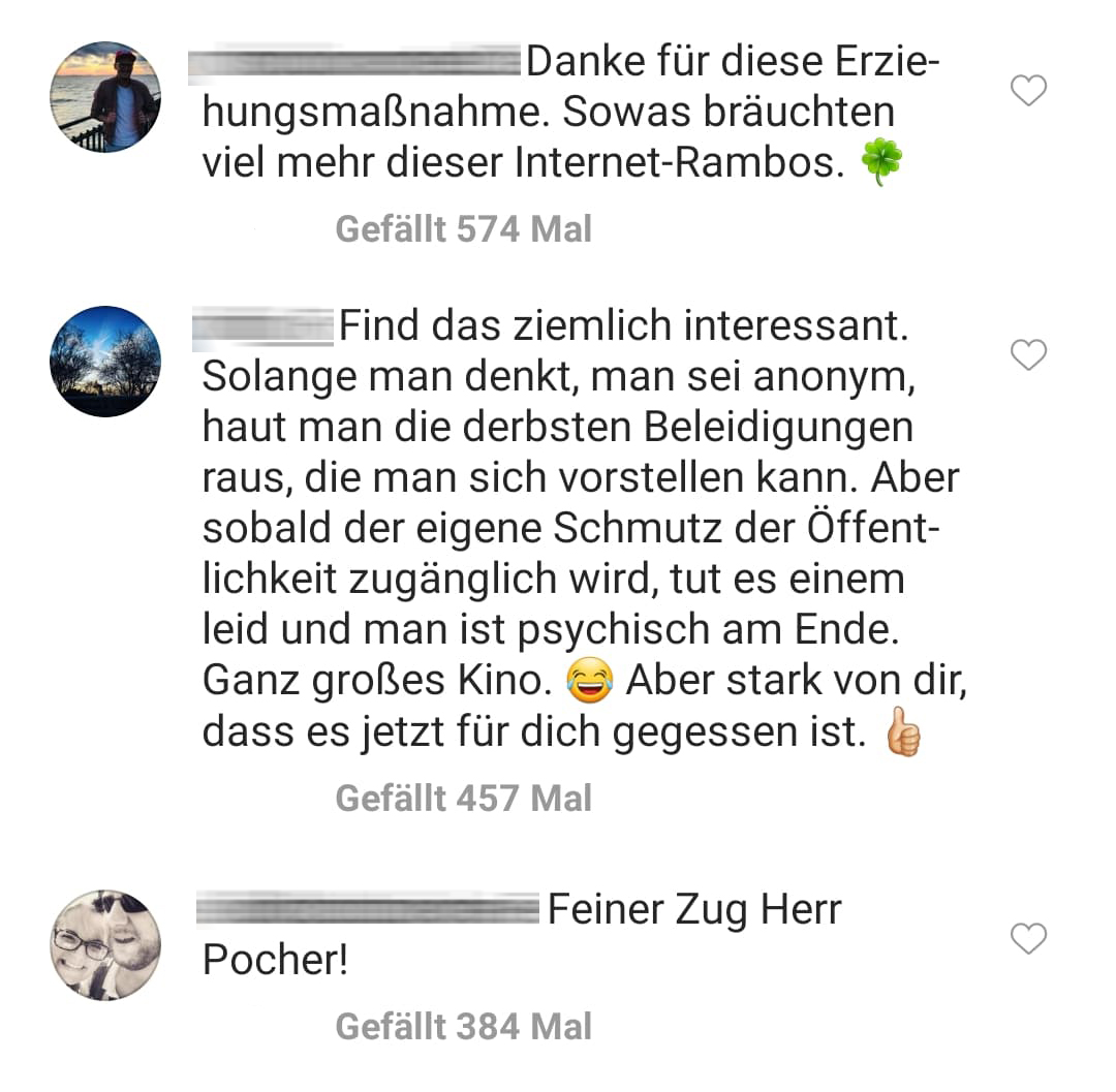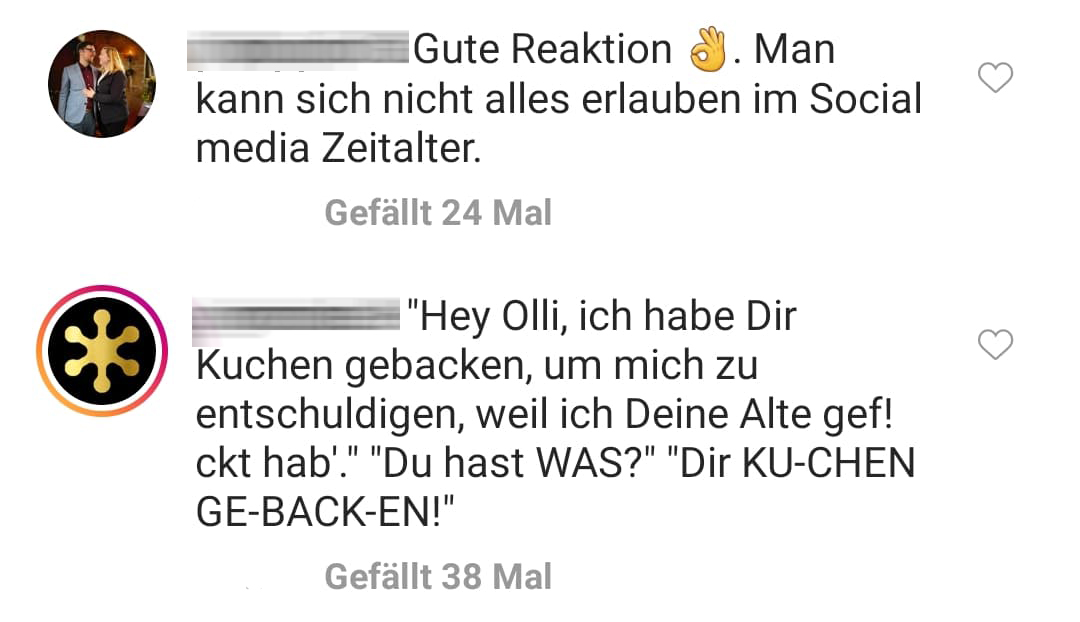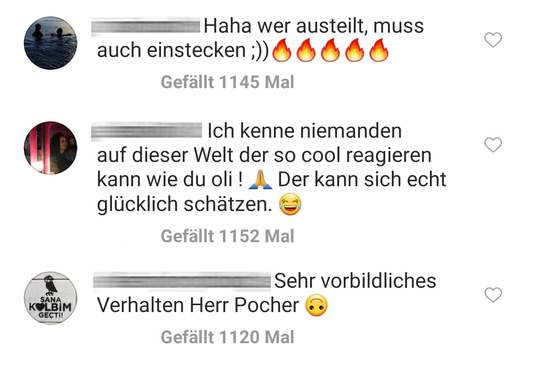 3. Für Oliver Pocher sei der Fall damit beendet. User Michal hingegen muss sich mit den heftigen Reaktionen der Fans auseinandersetzen. Die eindeutig auf Pochers Seite sind. Und zwar auf ALLEN Plattformen. Ob auf Facebook …