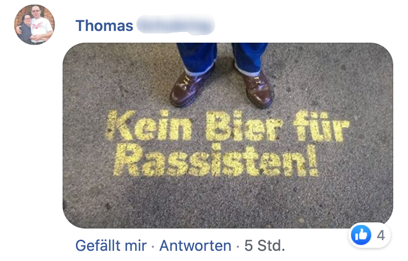 Der eigentliche Skandal an diesem Bild ist nicht, dass da ein paar Nazi-Idioten ihr Reichsbräu gebraut haben, sondern dass es in 🇩🇪 Regionen gibt, in denen man so etwas, ohne Probleme (finanz. Einbußen, Anzeigen) zu befürchten, in die Öffentlichkeit stellen kann.