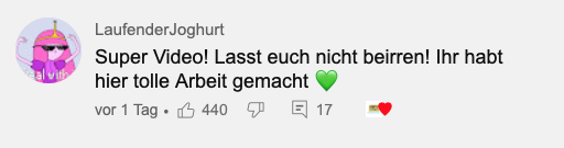 Der Aufruf zeigte Wirkung, auf YouTube hat das Video der Augsburger Puppenkiste mittlerweile doppelt so viele Likes wie Dislikes und zahlreiche positive Kommentare erhalten.