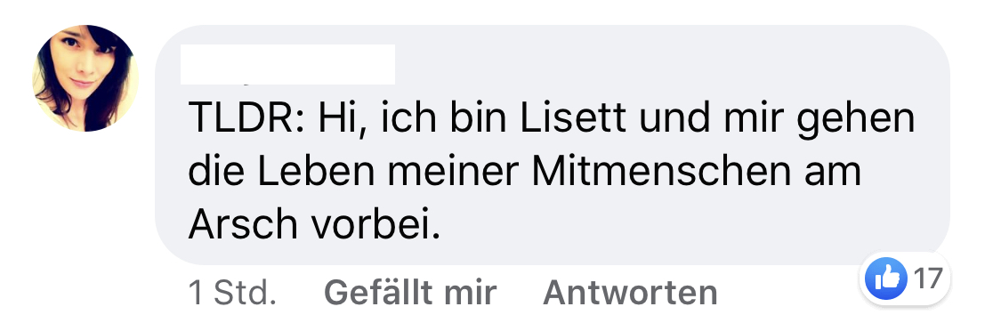 Lisett ist einfach ein egozentrisches und ignorantes Arschloch.