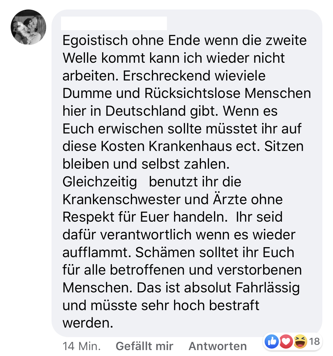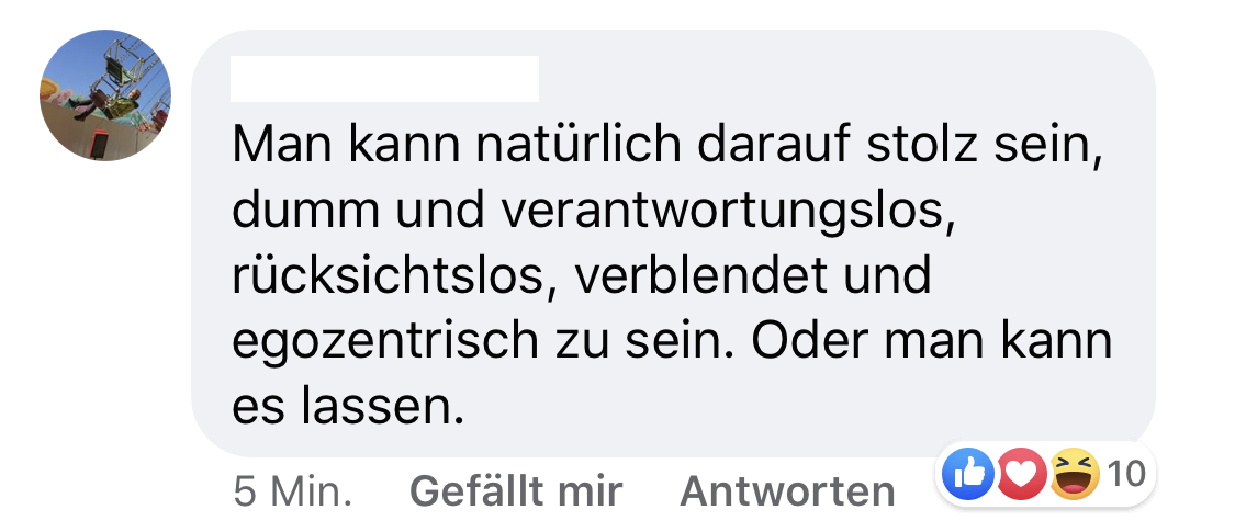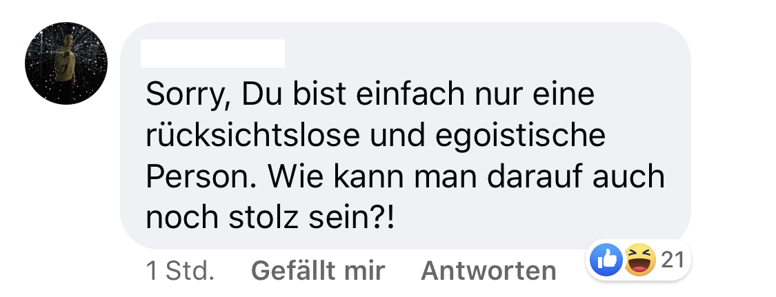 sie hätte sich den ganzen Absatz sparen und durch „ich scheiß halt auf andere Menschenleben“ ersetzen können. Dann steht wenigstens dazu. Mir ist das unbegreiflich.😢