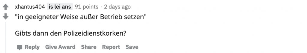 Tränengas ist ja ein beliebtes Mittel der Ordnungshüter, um größere Massen im Zaum zu halten. Das Gas aber auch gegen die Polizei eingesetzt wird, kommt wohl eher selten vor. Kommt aber vor, wie folgende Anzeige der Polizei Wien unter Beweis stellt.