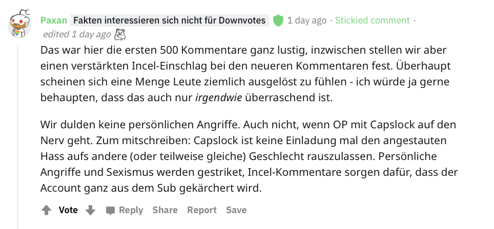Darauf gab es fast 1.800 Comments; mit der Zeit schlugen einige davon offensichtlich einen eher unangenehmen Ton an.