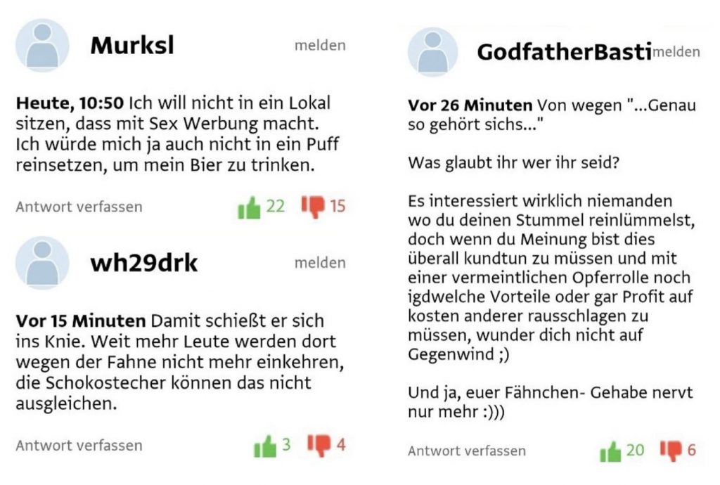 Der Gastwirt wollte mit der Flagge ein Zeichen setzen, da in jüngerer Vergangenheit eben solche Symbole in der Gegend in Brand gesteckt wurde. Kein Wunder, den Kommentaren zufolge.