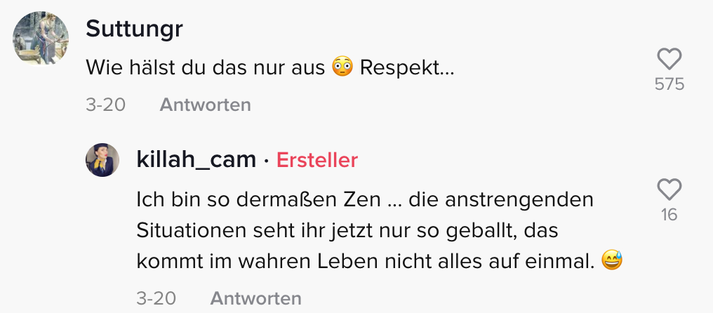 Über den Wolken soll die Freiheit ja bekanntlich grenzenlos sein, da kann das als Arbeitsplatz doch eigentlich nur perfekt sein, oder? TikTok-Userin @killah_cam arbeitet als Stewardess und nimmt ihre Follower immer wieder mit auf die Reise.