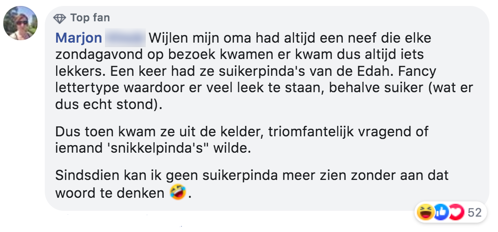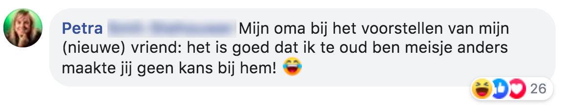 Na een blog vol met oma-anekdotes, deelden jullie enthousiast eigen verhalen over oma’s en ouderen. Ze bleven maar binnenstromen. Dus trokken we met jullie nog een blik open vol onvergetelijk uitspraken en acties van jullie oma’s.