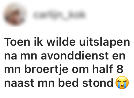 De meeste broers en zussen hebben een echte haat-liefdeverhouding. Het ene moment sta je met elkaar te knuffelen, en een paar minuten later kan je elkaar weer de hersens inrammen. Daarom vroegen wij jullie op Instagram naar opmerkelijke momenten met je broer of zus waardoor je verlangde naar enig kind zijn. Of ze je nu vaak op een irritante manier lastig vallen of steeds de kleding uit je kast jatten: vandaag op Nationale Broer en Zus Dag mag je best effe zeggen hoe blij je met ze bent.