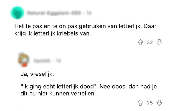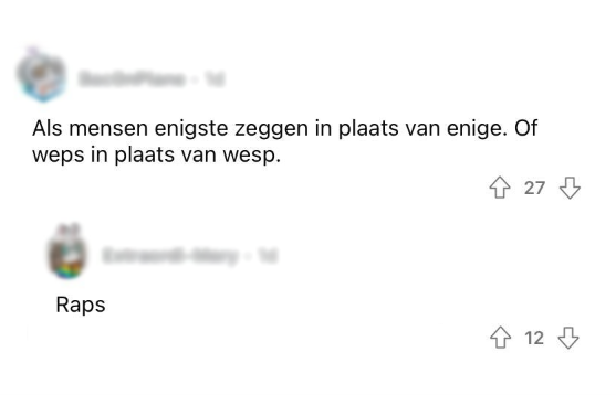Of het nu gaat om het verkeer, mensen die te laat komen, rommel in huis of het weer: we worden allemaal geconfronteerd met dagelijkse bronnen van irritatie. En geloof het of niet: de Nederlandse taal kan ook voor de nodige ergernissen zorgen. Er zijn behoorlijk wat Nederlandse woorden en termen waar mensen zich flink van kunnen gaan steigeren. Op Reddit vroeg iemand van welke woorden andere mensen de kriebels krijgen en deze vraag hoef je Nederlanders geen twee keer te stellen. De meesten weten er namelijk behoorlijk wat uit hun mouw te schudden.