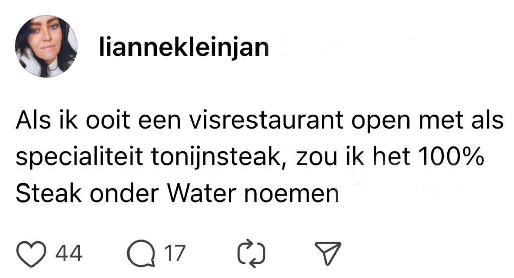 Woordgrappen: je houdt ervan of je krijgt er spontaan jeuk van. Maar laten we eerlijk zijn — soms zijn ze zó slecht dat ze juist weer briljant worden. Het draait allemaal om de perfecte timing. Zo zal de grap ‘hij kan wel door de grond zakken’ terwijl de kist wordt neergelaten op de uitvaart van je opa misschien níet gewaardeerd worden. Of een ludieke woordspeling over ‘nog wel een gaatje hebben’ en ‘het flink voor je kiezen krijgen’ bij de tandarts: zeer origineel. Gelukkig hebben deze Nederlanders dit kunstje wél helemaal onder de knie en worden hun slechte woordgrappen online met open armen ontvangen.