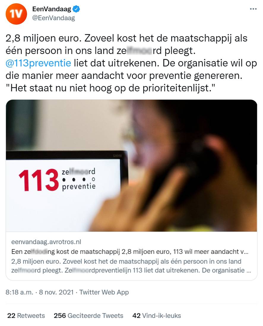 Een einde aan het leven maken: we hoeven je vast niet te vertellen hoe belangrijk het is dat er meer aandacht gaat naar de preventie daarvan. Met een bijzondere berekening probeert Hulplijn 113 dat te bewerkstelligen. Maar daarmee slaan ze de plank een beetje mis, als we de Twitterdiscussies mogen geloven.