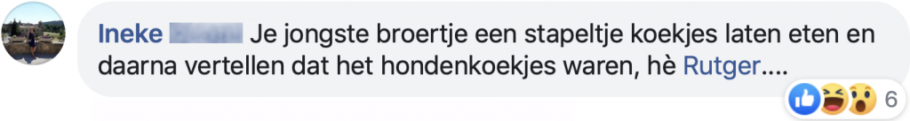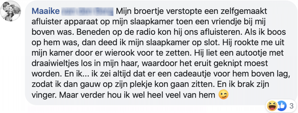 Vorig jaar vroegen we jullie om met voorbeelden te komen van momenten waarop jij het leven van je broer of zus moeilijker maakte. Waarbij moeilijker een understatement is. Dit deelden we met jullie, waarop er nog veel meer moois in de Facebook-reacties verscheen. Daarom, hierbij: een welkome aanvulling.
