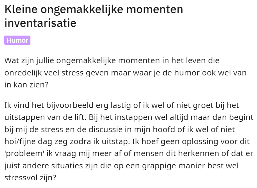1. Dit ongemakkelijke moment is de aanleiding van de vraag naar meer voorbeelden.