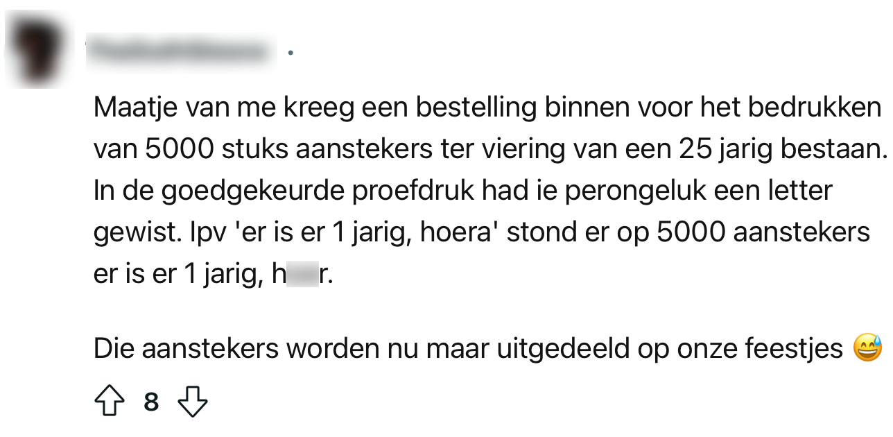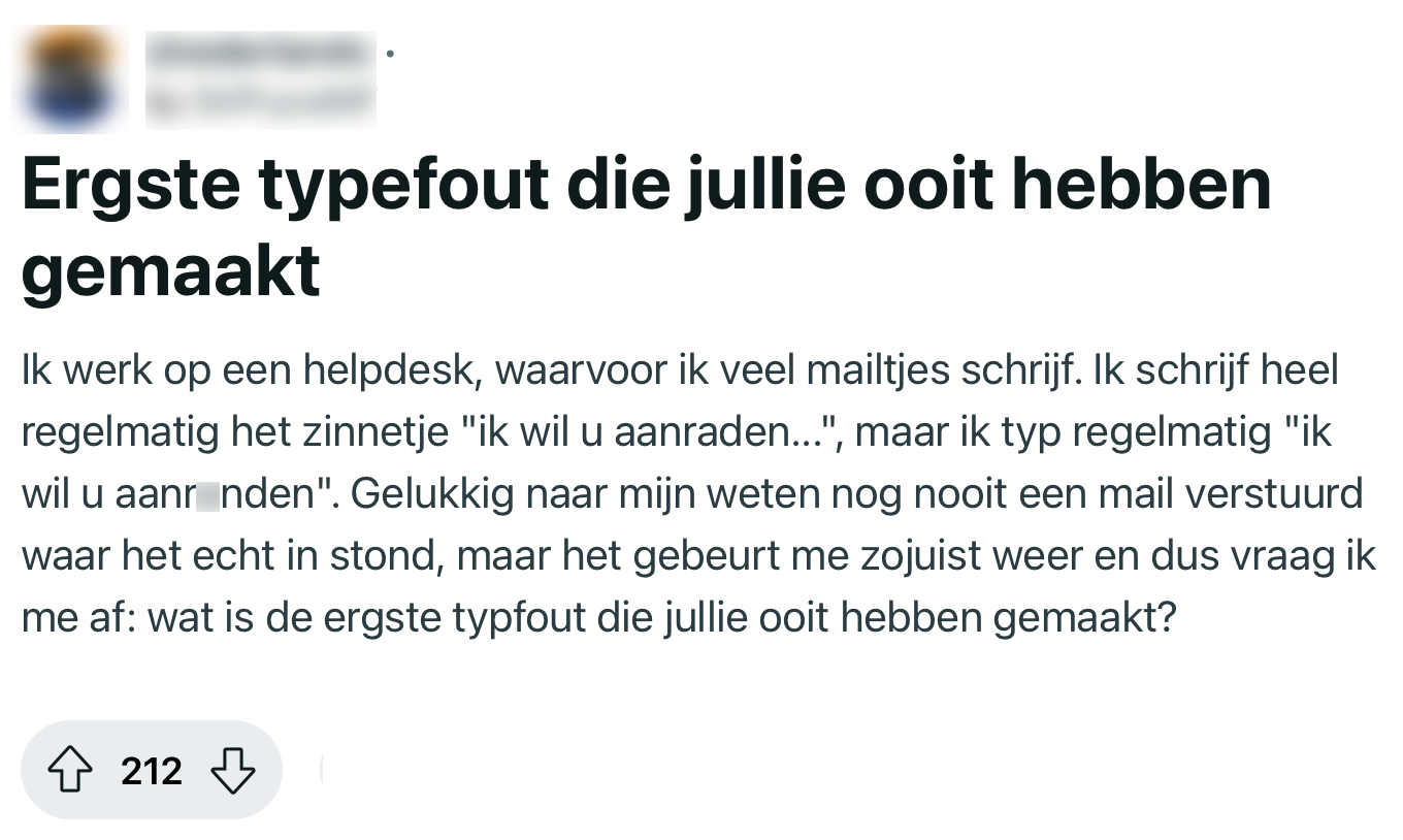 4. Een typefout waarvan je hoopt dat-ie snel vervliegt.