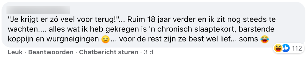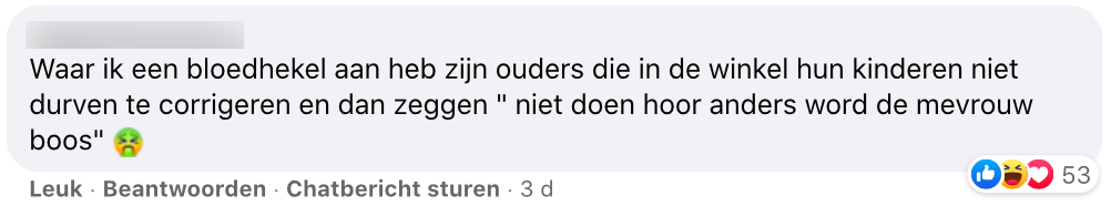 7. Wat doe je als je je kind niet fatsoenlijk aan durft te spreken? Iemand anders de schuld geven.