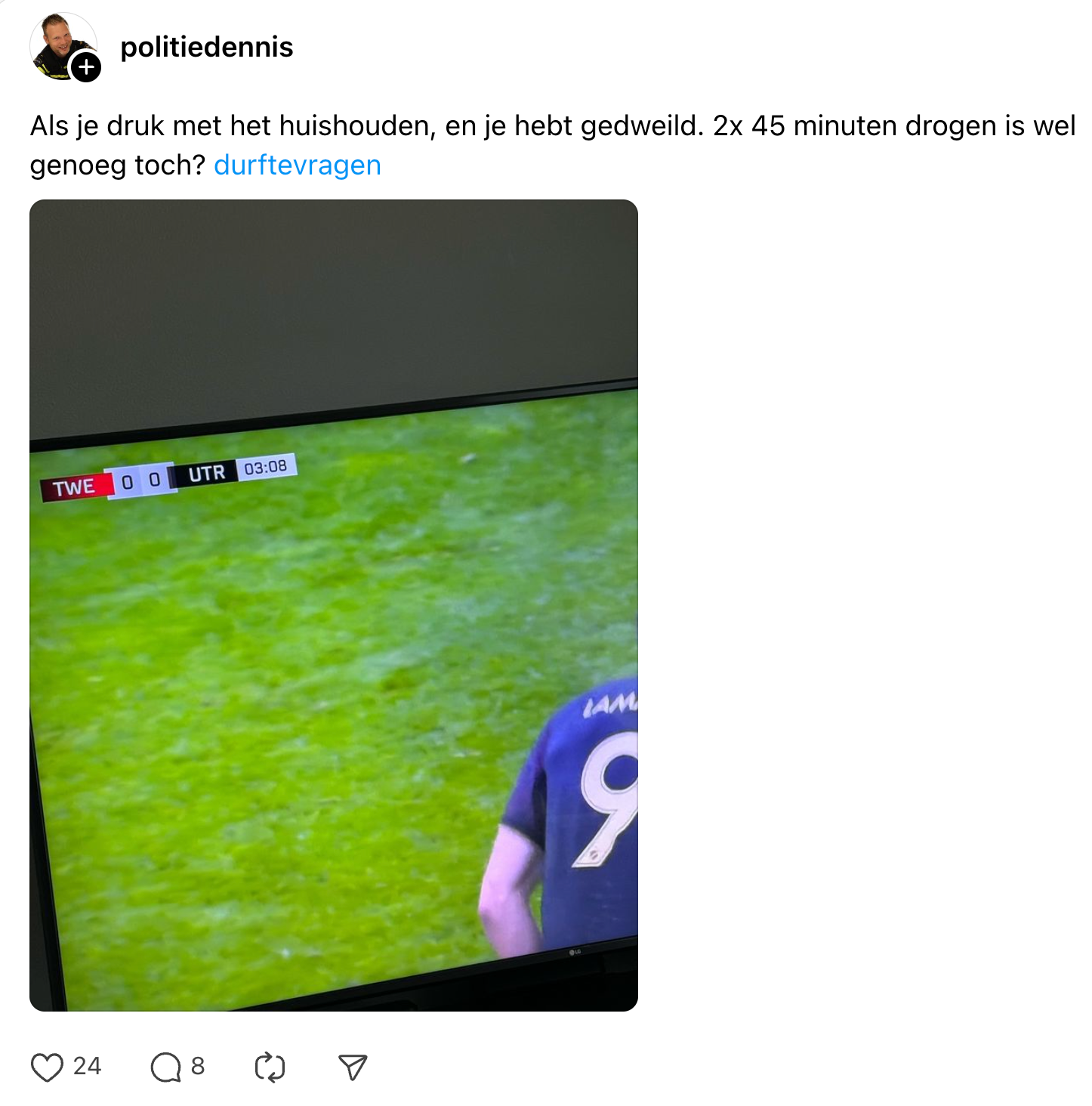 het feit dat mijn wasmachine het weer doet, was geen uitnodiging om mijn soep maar om te gooien, hé? pic.twitter.com/5nM8f9hkdL— Tam Masmeijer (@KatuitdeBoomNL) April 17, 2024