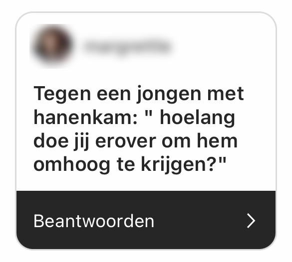 16. En tot slot: stel deze vraag nooit aan iemand met een hanenkam. Of gewoon überhaupt niet.