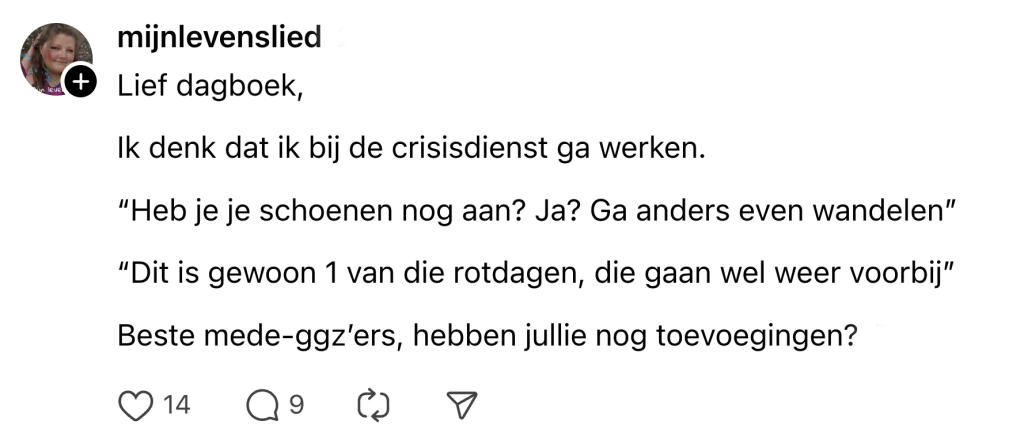 9. Je zou denken dat ze bij GGZ wél een advies kunnen geven waar je daadwerkelijk iets aan hebt…