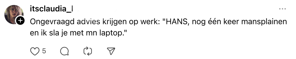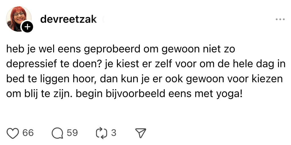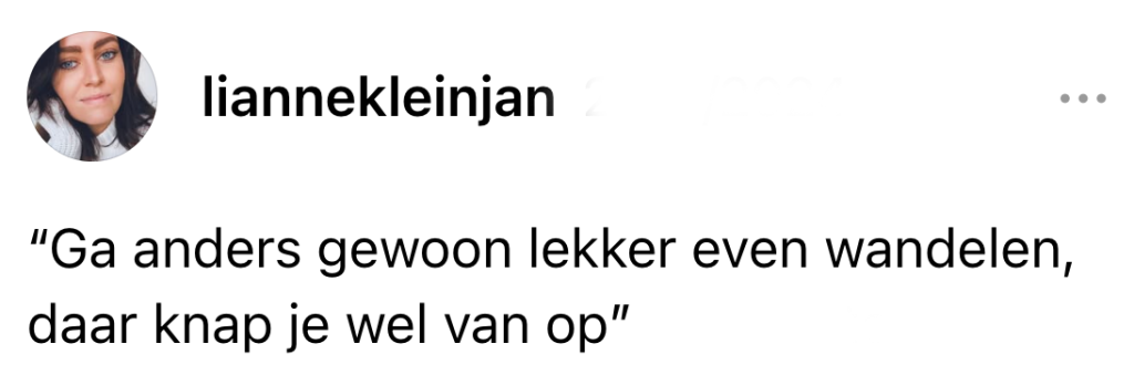 Tegenwoordig delen een hoop mensen hun gevoelens en problemen op social media, meestal gewoon om even hun hart te luchten. Stel: je hebt last van een prikkelbare darm. Je hebt alles al geprobeerd en talloze adviezen van artsen gekregen. Dan wil je online gewoon effe klagen over je terugkerende sores. Nou, reken er maar op dat Henk_anonymous0051738 uit Schin op Geul klaar zit achter zijn toetsenbord om jouw dag nóg erger te maken met een portie ongevraagd advies: ‘Heb je al andere voeding geprobeerd?’ Dat deze goedbedoelde adviezen soms net onkruid zijn, bewijzen de posts van deze gefrustreerde Nederlanders.