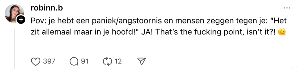 8. POV: je loopt al vier weken rondjes door de wijk, maar bent nog steeds depressief.