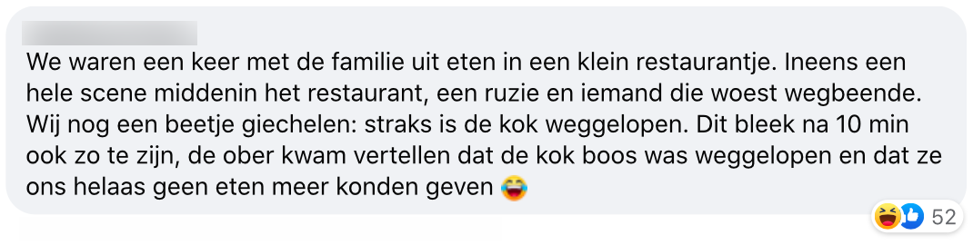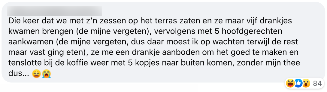 Natuurlijk zijn we weer hartstikke blij dat de horeca weer open is, maar zijn we niet vergeten dat alles niet altijd even soepeltjes gaat. Al eerder vertelden jullie over jullie maffe horeca-ervaringen in dit blog, maar blijkbaar was het nog niet genoeg en hadden jullie nog meer toe te voegen aan onze bestelling.