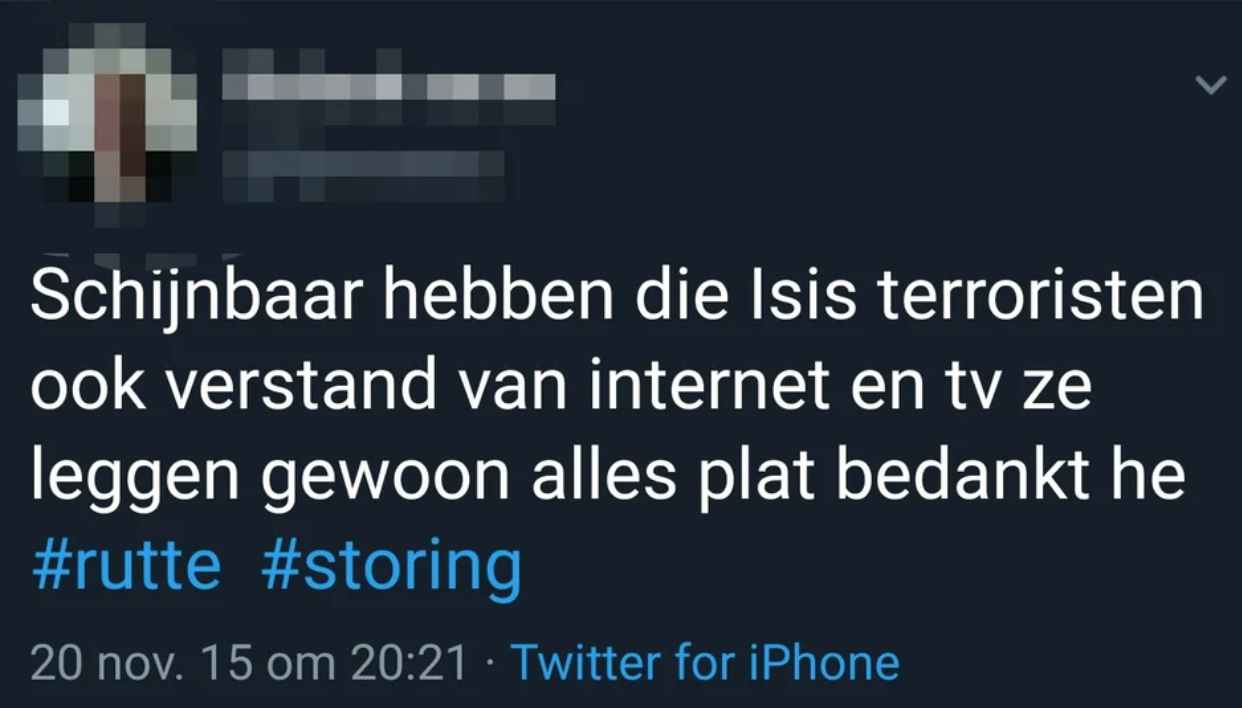 3. Bedankt hè Rutte, dat Is1s alles platlegt en wij door het hele land storing hebben.