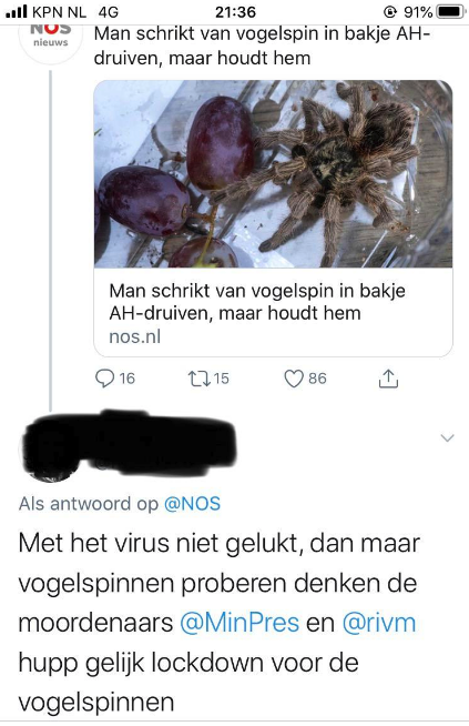 10. En pas ten slotte op voor vogelspinnen tussen je fruit, want dat is weer zo’n slinks plannetje van…. ach je weet inmiddels wel wie.