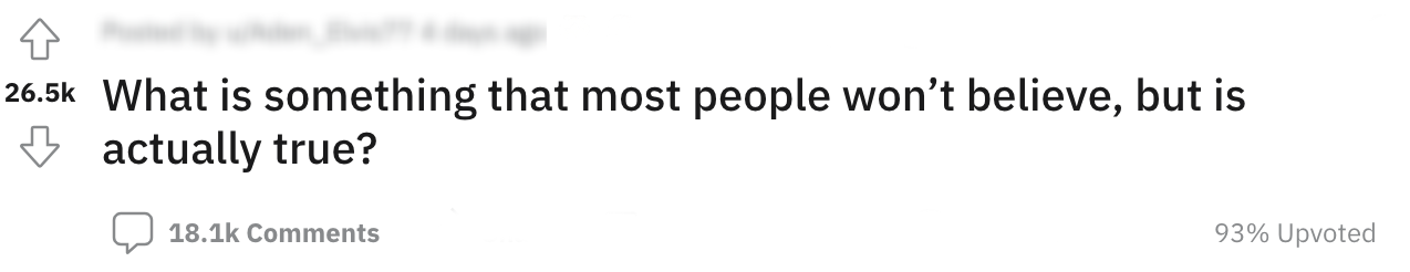 Sommige feitjes zijn zo random dat je ze simpelweg niet kan geloven. Dan is ook altijd nog de vraag: wanneer is iets een feit? Er is in ieder geval genoeg onderzoek en wetenschap in de wereld geweest om een berg aan bizarre feitjes te verzamelen. Op Reddit vroeg iemand naar moeilijk te geloven feitjes.
