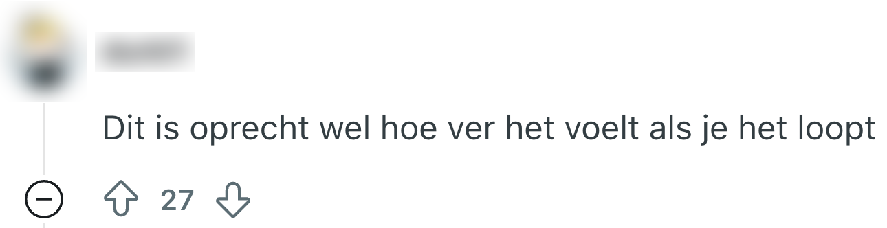 Hoewel veel plekken goed bereikbaar zijn met het openbaar vervoer, kan de bus, metro of tram je niet altijd op je exacte plaats van bestemming brengen. Aangezien niet iedereen een bushalte in de achtertuin heeft staan, zal je soms een stukje moeten lopen. 9292 geeft gelukkig aan hoe je precies moet lopen en hoelang je daar ongeveer over doet. Deze reiziger krijgt echter wel een heel opmerkelijk loopadvies, waar zelfs Femke Bol flink voor moet doorlopen.