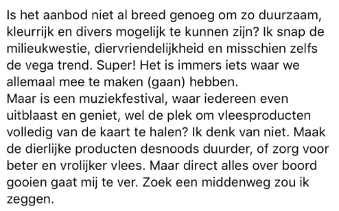8. Overigens is het misschien goed om even te vermelden dat het festival nog nergens een officiële aankondiging heeft gedaan over volledig vega gaan. De festivaldirecteur heeft alleen verteld dat ze het aan het overwegen zijn.