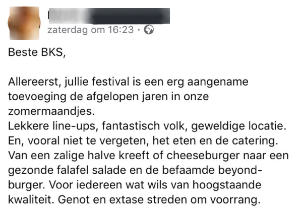 2. Deze persoon begint dus een betoog op de eventpagina van Best Kept Secret. (het bericht is inmiddels verwijderd.)