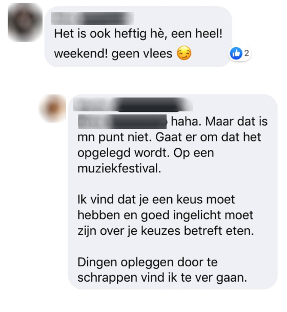 Daarom moet je het nooit aankondigen dat je als bedrijf/evenement 100% vegetarisch wordt maar het gewoon doen. Gegarandeerd dat niemand het doorheeft