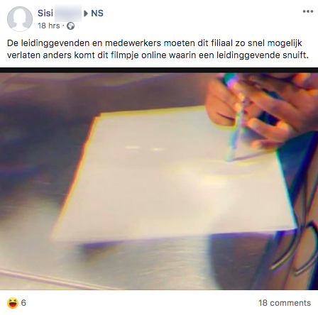 In het kort: hierin kaart ze aan dat er een filiaal van de AH to go, een keten die valt onder de NS, een ‘zwijgcultuur’ heerst. Ze beschuldigt de keten van velen misstanden die volgens haar in de doofpot worden gestopt: ongewenste aanraking door filiaalmanagers, medewerkers die worden aangevallen door klanten of leidinggevende en ongelukken op de werkvloer. De NS is in haar verhaal de hoofdschuldige vanwege het negeren van deze misstanden en het voortrekken van foute filiaalmanagers. Aan het eind van het bericht lijkt het voor om één manager in een filiaal in Amsterdam-West.