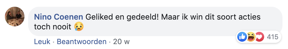 4. Nino maakte een onnavolgbare grap met de welbekende social win-acties want hij hoopt dat hij dit keer wel in de prijzen valt!