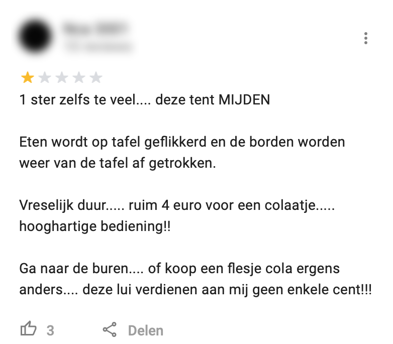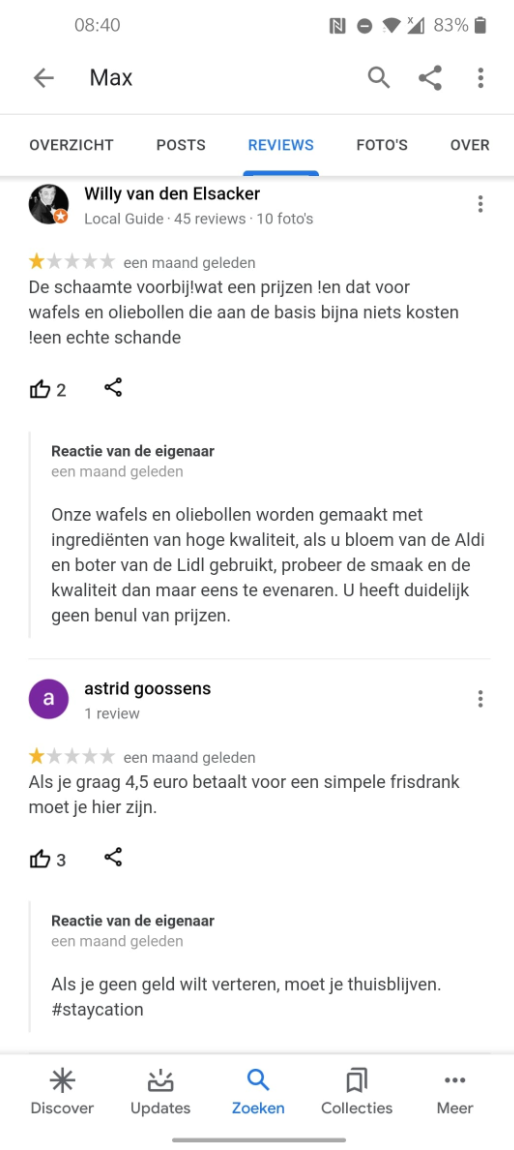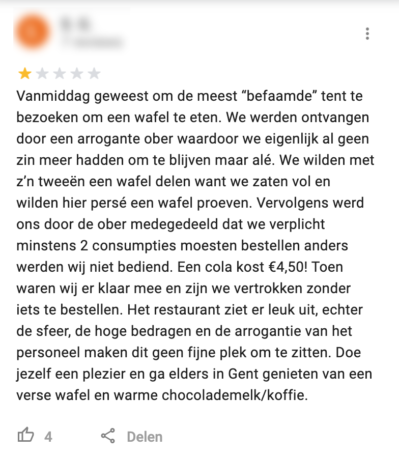 3. En er staan inderdaad een hoop reviews en reacties online. Deze mensen waren liever ergens anders heen gegaan voor wafel…