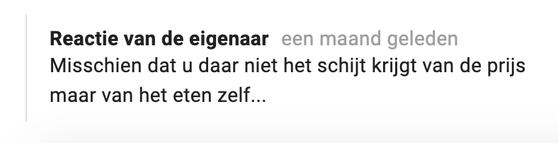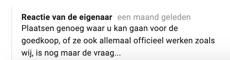 2. Zo schijnen bijvoorbeeld de drankjes nogal duur te zijn. Thomas wijst ons even op de recensies ínclusief reacties van de eigenaar.
