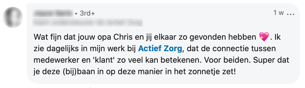 1. Ze deelt haar ervaring in een hartverwarmend LinkedIn bericht.