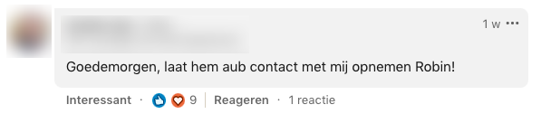 1. Dit is het bericht dat Robin op LinkedIn plaatste. Faisel is op zoek naar een stage en Robin besluit om hem daarmee te helpen.