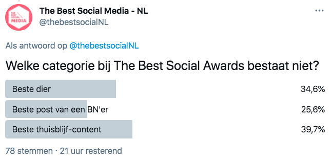 Welke categorie bij The Best Social Awards bestaat niet?