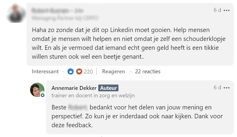 11. Gelukkig zijn er genoeg mensen die niets dan positiviteit uit Annemaries bericht halen en het voor haar opnemen.