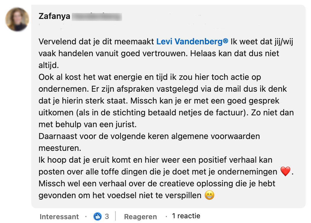 3. Tot zijn grote verbazing hoort Levi niks van de groep en zit hij met de gebakken peren. Daarom vraagt hij mensen op LinkedIn om advies.