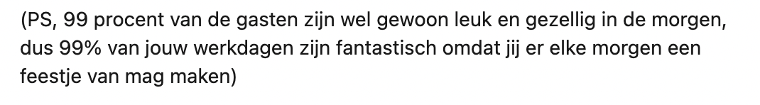 5. Oei, toch de spreekwoordelijke kleine lettertjes: wees er op voorbereid dat niet álle gasten vervelend en chagrijnig zijn.
