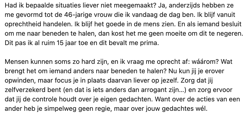 De zakenwereld kan een omgeving zijn vol strijd, jaloezie en helaas ook discriminatie. Als vrouw kan het extra lastig zijn, omdat het vandaag de dag nog steeds niet de norm is dat een vrouw bovenaan de top kan staan. Moniek ervoer in haar carrière veel strijd als vrouw zijnde. Op LinkedIn deelt ze haar ervaring in een verhaal met een belangrijke boodschap.