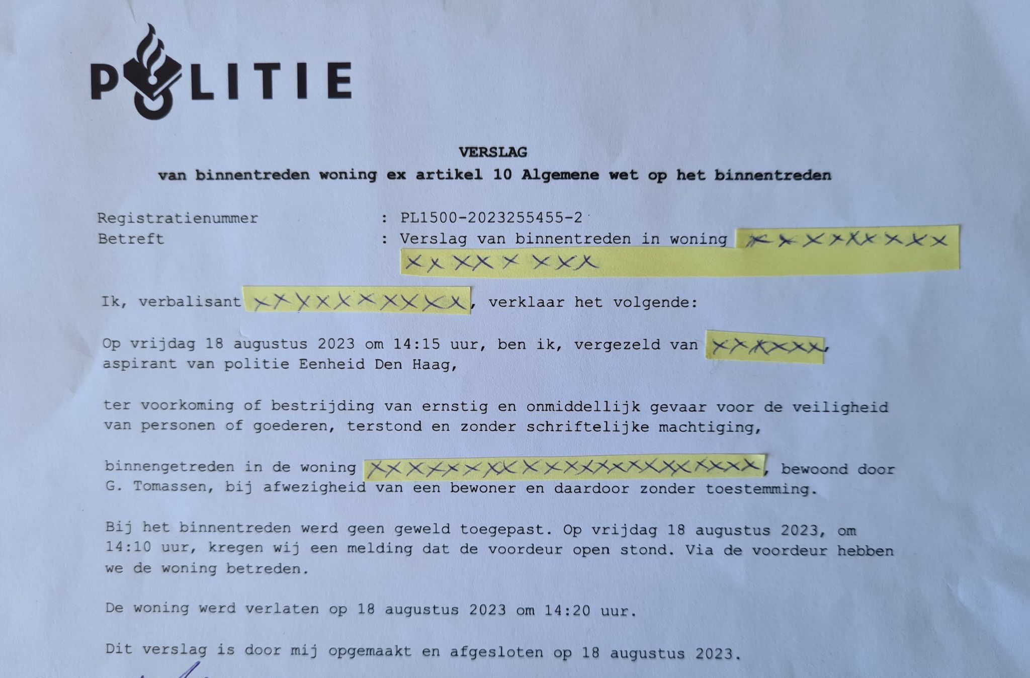 1. Kom je net thuis, ligt er een brief van de politie op je mat met de boodschap dat ze (terecht) in je huis zijn geweest.