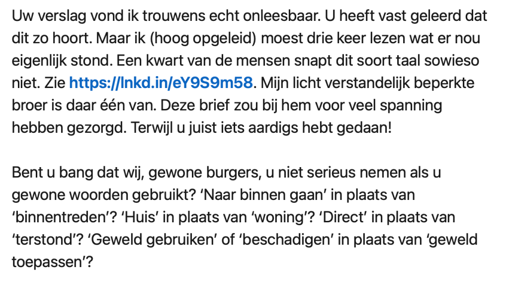 9. Er zijn ook mensen die de commotie om de brief van de politie niet helemaal begrijpen.
