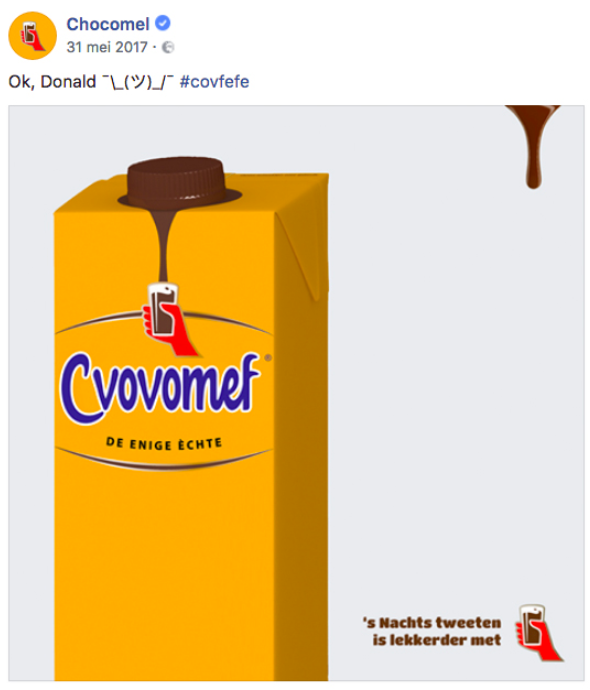 5. Niemand weet nog steeds wat covfefe betekent, maar Chocomel kon er wel chocola van maken.