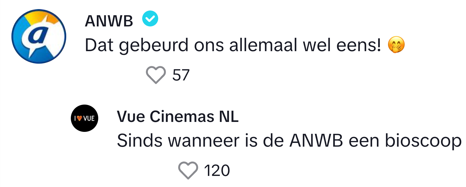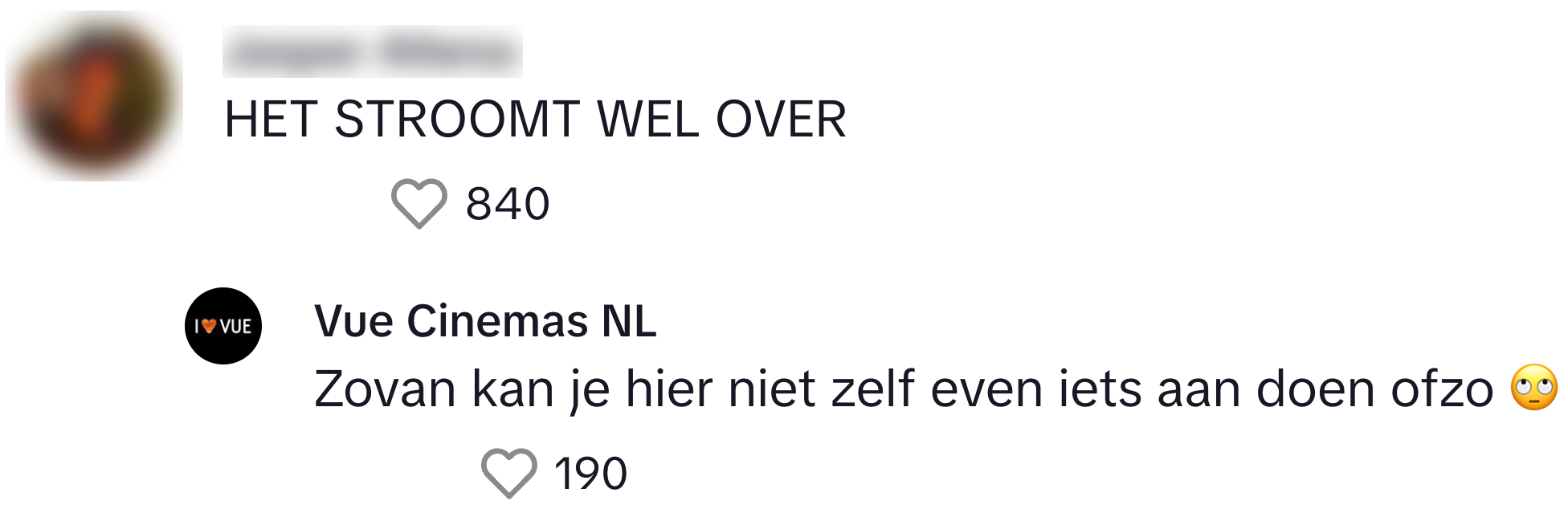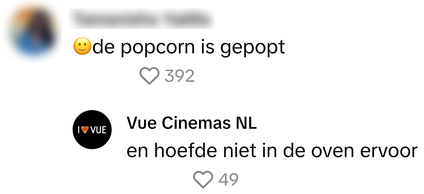 We weten inmiddels allemaal wel dat bedrijven soms behoorlijk vermakelijk uit de hoek kunnen komen als het gaat om webcare. Wie inmiddels ook wel raad weet met de comments op social media, is bioscoopketen Vue. Zij krijgen flink wat reacties op hun TikTok- account maar weten daar feilloos mee om te gaan, en dat zorgt voor flink wat vermakelijke antwoorden. En eerlijk is eerlijk, dat is niet te filmen.