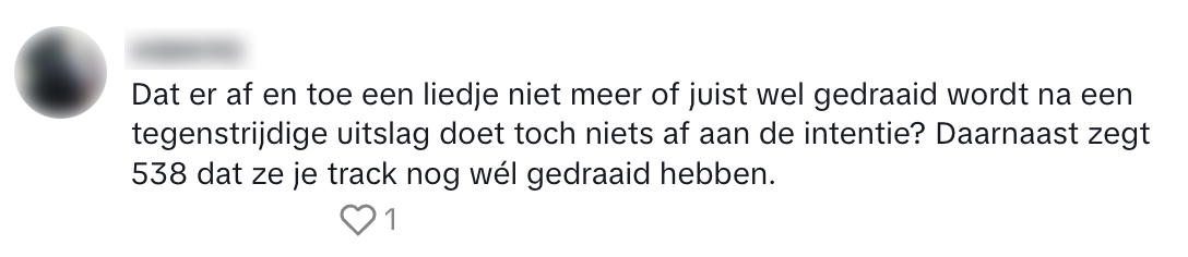6. Sommigen snappen echter wel waarom Radio 538 sommige ‘gemaakte’ nummers toch niet zou draaien.