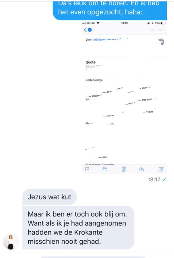 2. Maar recent kreeg ze plotseling onderstaand berichtje van iemand die bij Quote werkt.