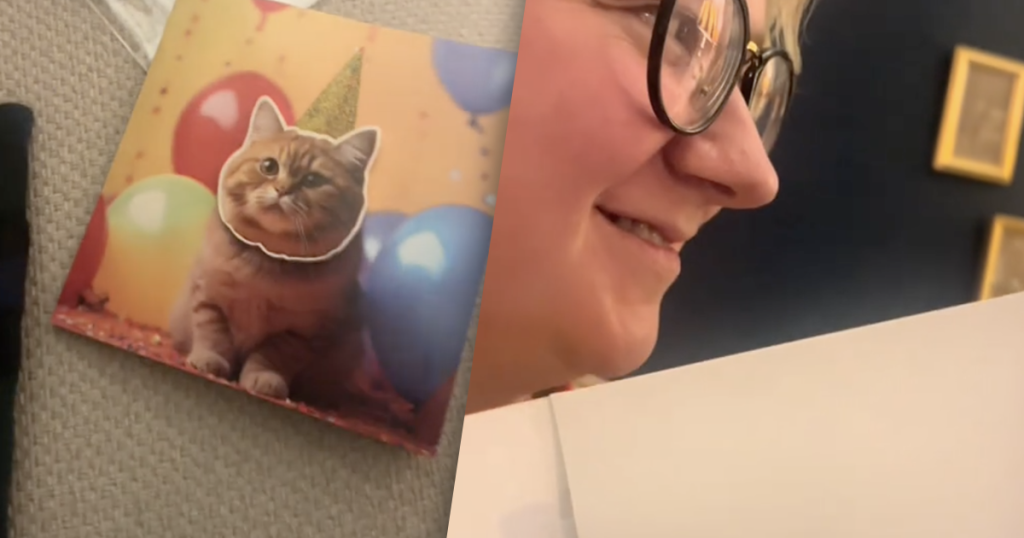Als je je verjaardag viert en allerlei kaas, worst, chips en goedkoop bier inslaat, mag je op zijn minst verwachten dat je gasten met een kaartje komen aanzetten. Het wordt nog beter als er zelfs een persoonlijke boodschap in de kaart staat. Als kers op de taart kan je bij Action nu verjaardagskaarten kopen waarin je zelf een boodschap kan inspreken. Marleen kocht er zo een voor haar vader en besloot een wel heel opvallend bericht op zijn kaart te zetten.