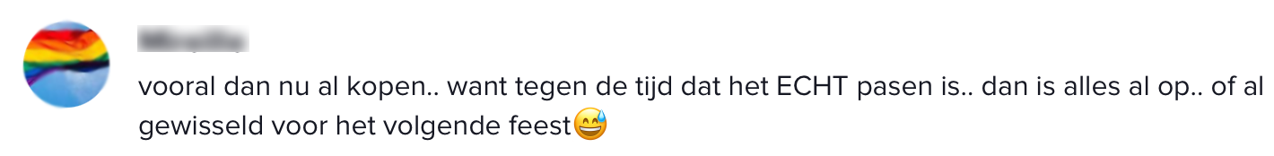 7. Omdat het er nu al ligt zorgt dit bij veel mensen toch ook voor stress, want wat nou als alle paasspullen hierdoor al zijn uitverkocht voordat Pasen überhaupt begint?!